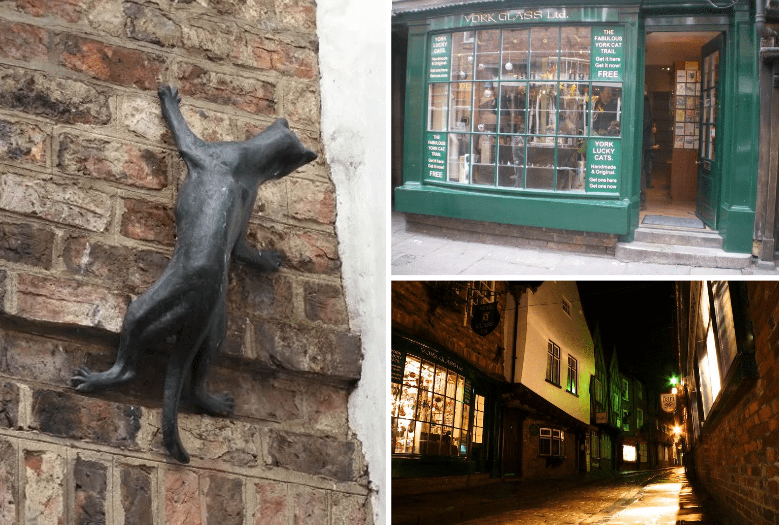 From the bustling city centre to quiet tucked-away alleys, these feline figures watch over York with playful curiosity.