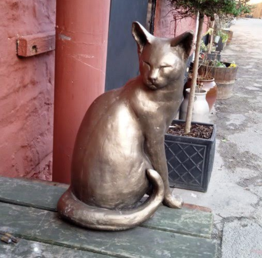 The last of the dozen cat statues the author helped bring to life, Jo’s Bruks Cat is a small but striking sentinel, crafted by the talented Eoghan Bridge. Perched outside Bruks, he watches over the comings and goings of locals and regulars alike, never missing a detail.