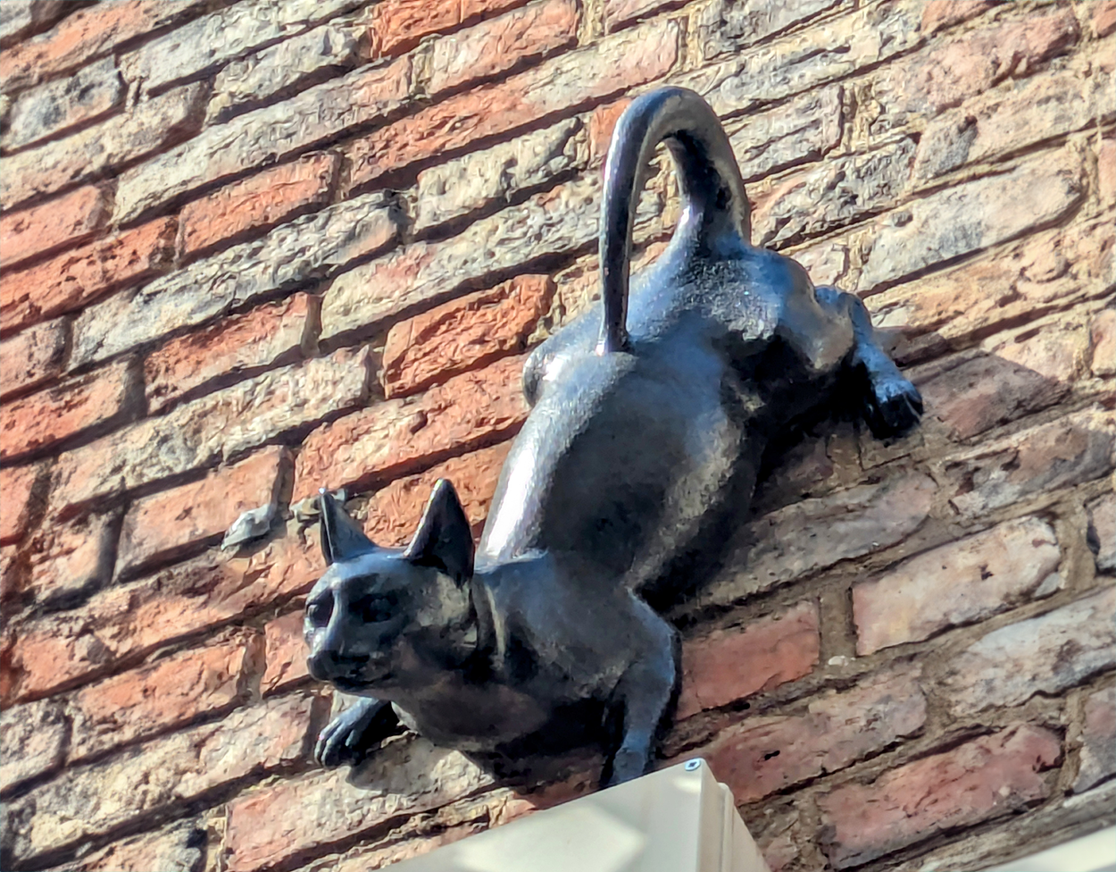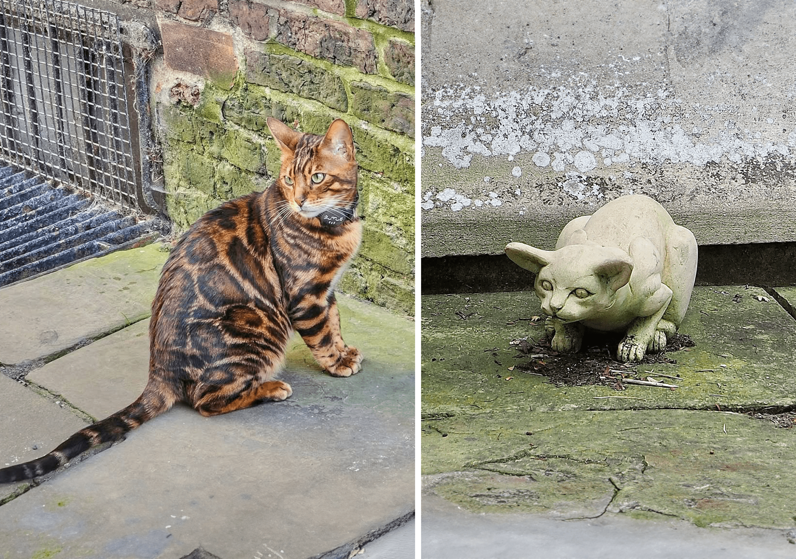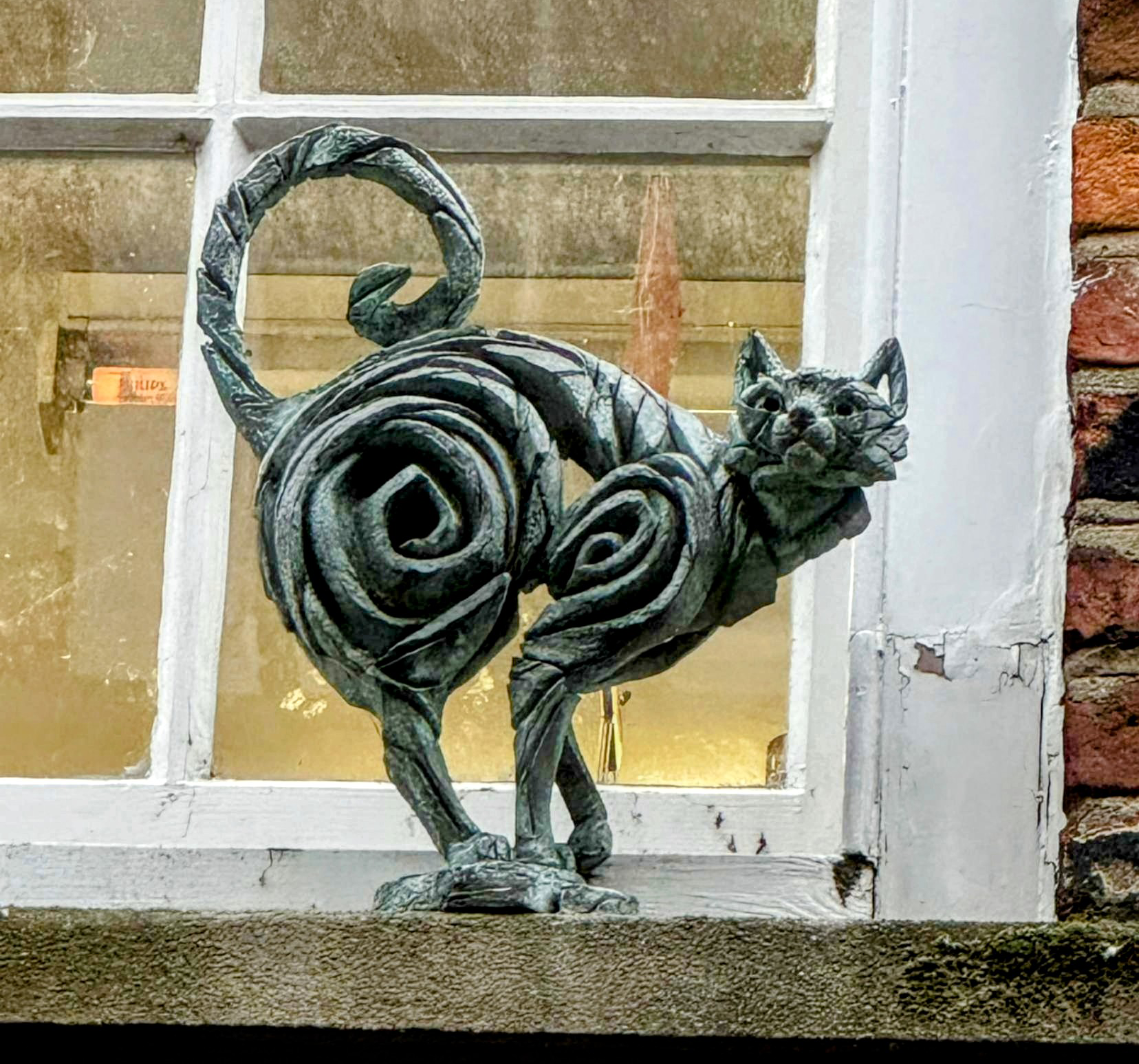 Both were sculpted by Eoghan Bridge, a talented local artist and devoted cat lover. His work can be found throughout York — he’s also the creator of the cat on Peter Lane and the mysterious one-eyed cat on Stonegate.