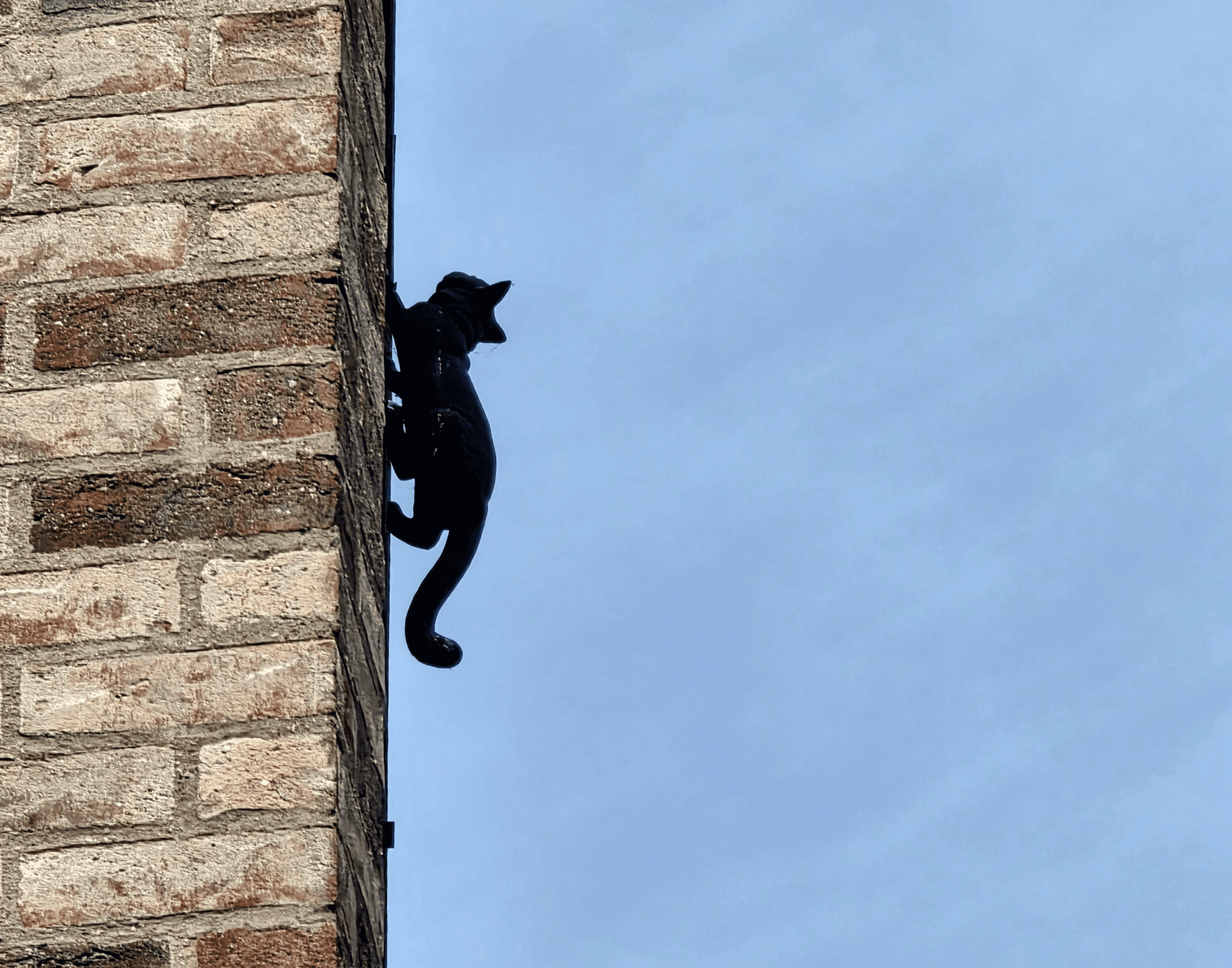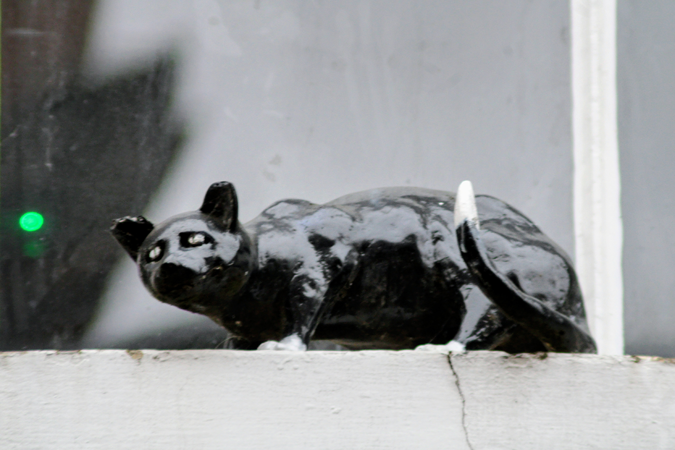 Perched proudly above a prestigious Mount building is a cat with authority – known as The Boss’ Cat, or sometimes The Architect’s Cat. Jet black, with recently refreshed luminous eyes, he keeps a sharp, purposeful watch over the street below, right from above the front door.