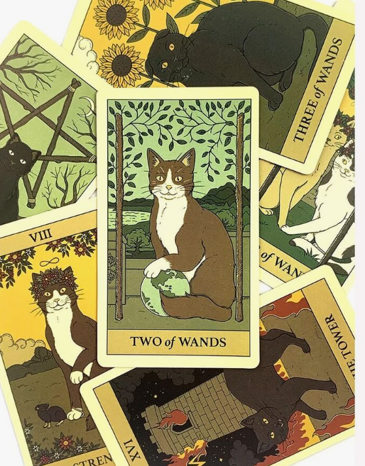 78 Unique, Cat-Centric Cards: From the determined “Two of Wands” holding the globe, to the wise “Strength” crowned in flowers, every card is reimagined with a charismatic feline at its heart. These aren’t just cats; they are majestic, soulful ambassadors of their respective arcana.