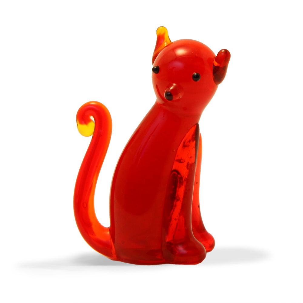 Our lucky cats are unique and are handmade. The small sized cat stands approximately 37mm tall, our medium sized cat stands approximately 62mm tall, and our large cat is approximately 90mm tall. All sizes for our lamp-worked animals are approximate as there will always be differences in each individually crafted item.
